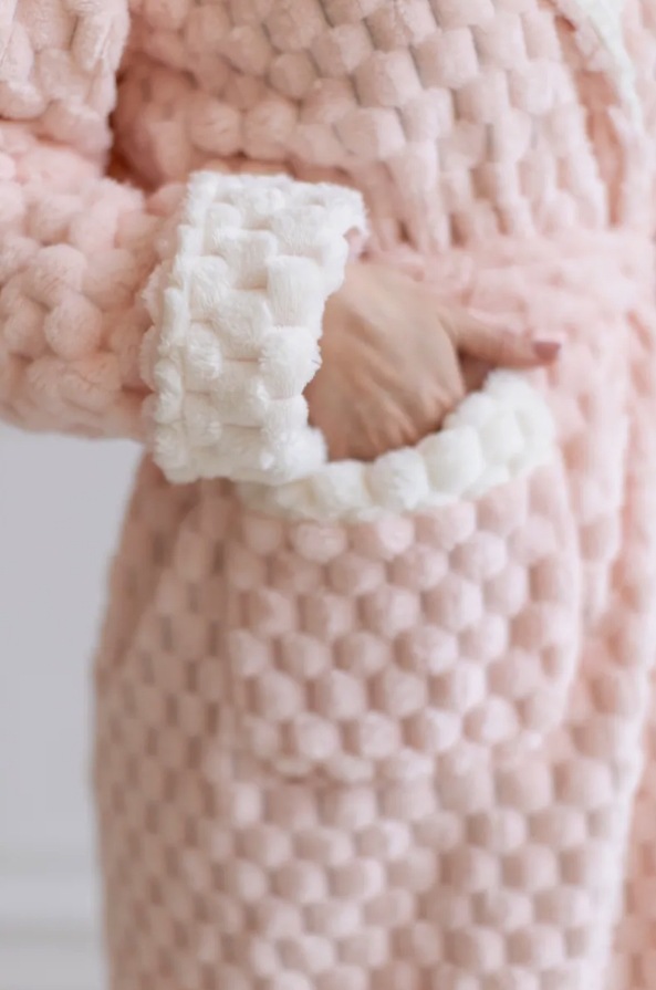 ✨ Un peignoir qui combine chaleur, confort et élégance, parfait pour vos soirées cocooning.