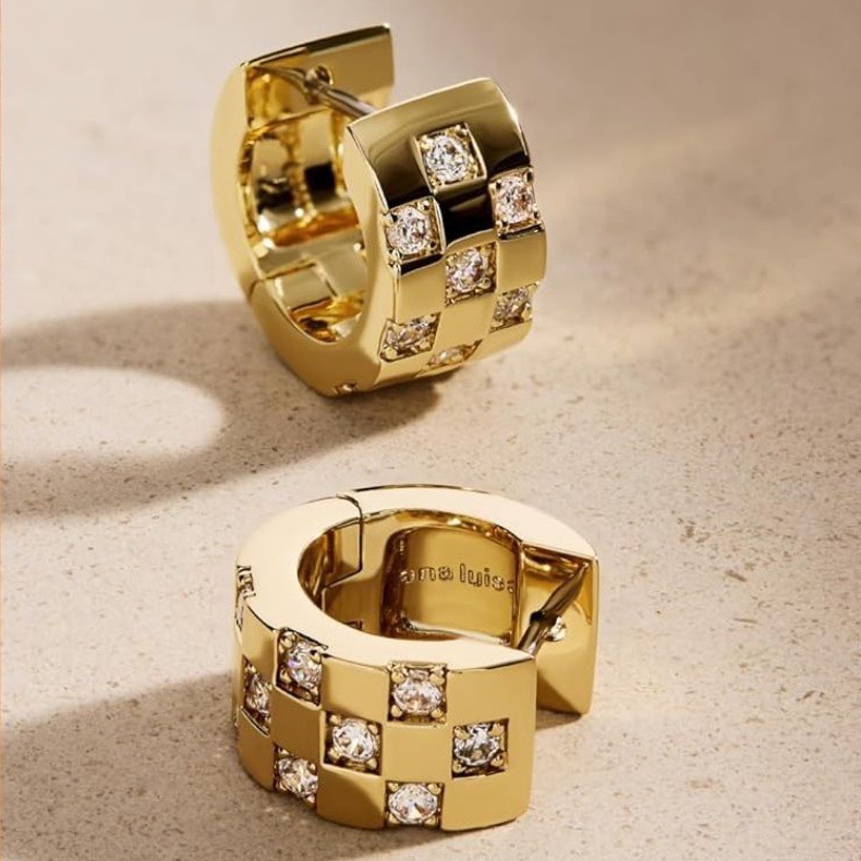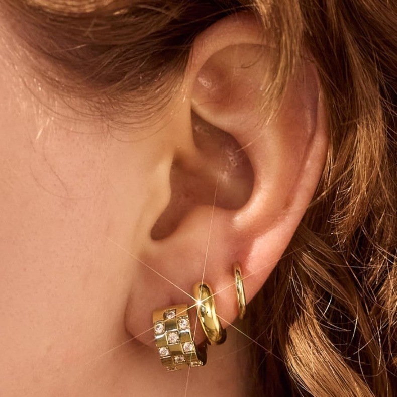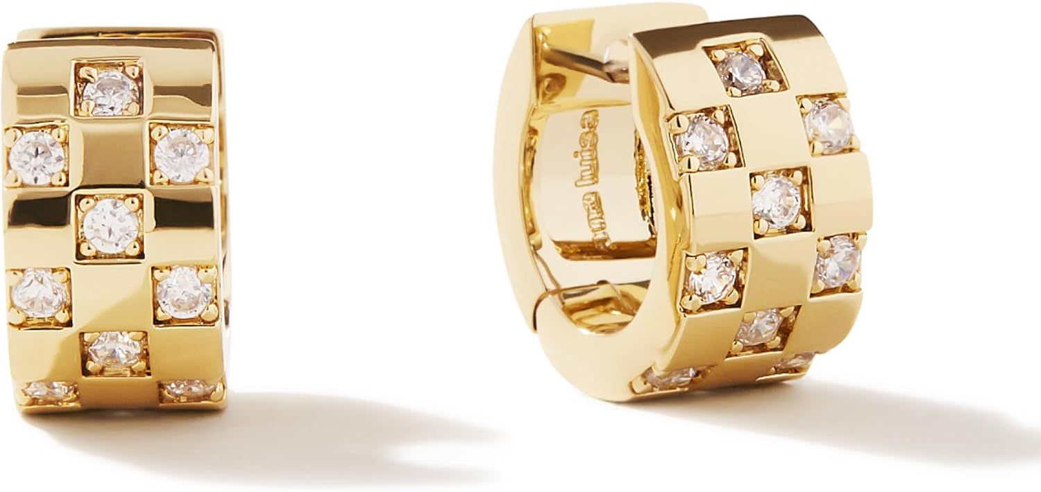 Boucles d’oreilles clous en zircone cubique, motif damier, plaqué or 14K