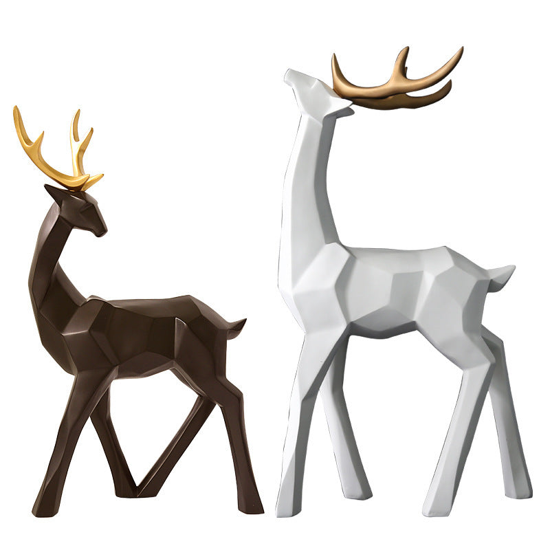 Leur design minimaliste et géométrique en fait des pièces décoratives uniques, parfaites pour sublimer un salon, un porche ou une entrée. Le contraste entre le cerf blanc (26 cm de large × 48 cm de haut) et le cerf noir (24 cm de large × 40 cm de haut) apporte un équilibre visuel saisissant, idéal pour un décor moderne et sophistiqué.