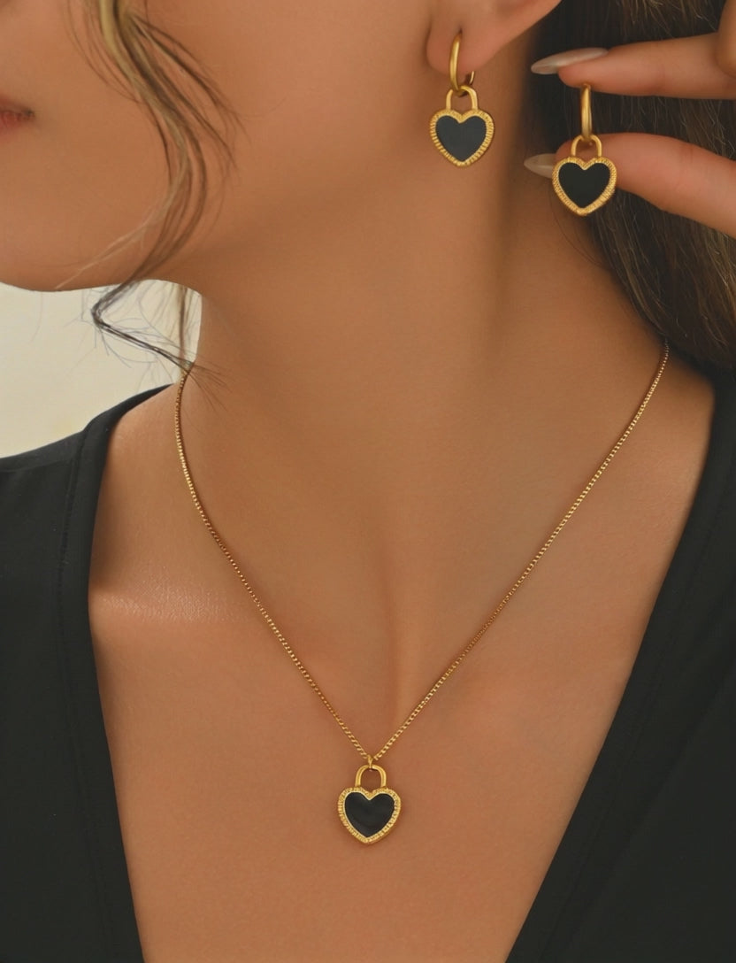 - Finition : Surface polie effet miroir (collier et boucles d’oreilles)