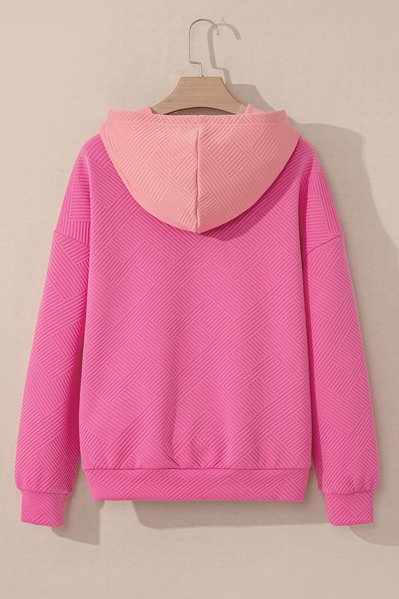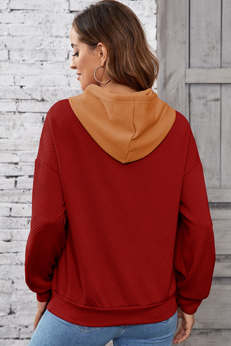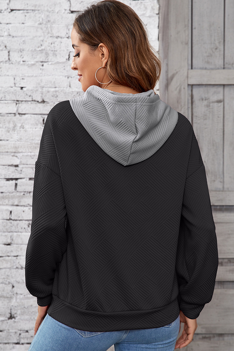 Sweat à capuche d’hiver pour femme – Style ample, épaules tombantes, à enfiler, avec patchwork contrasté